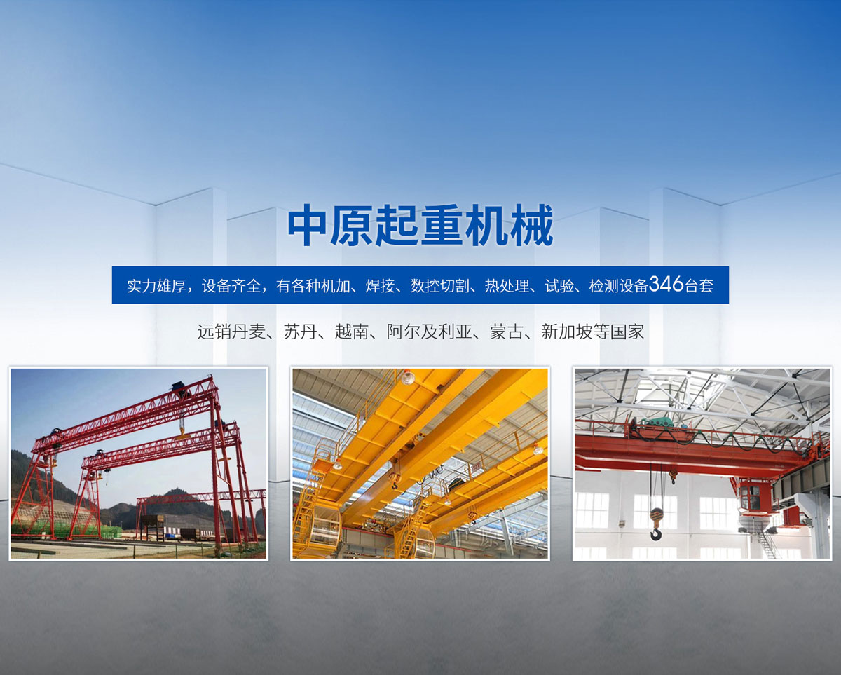 新鄉(xiāng)市中原起重機械有限公司成立于2000年,地處中原,輻射全國28個省市自治區(qū),設(shè)外埠經(jīng)銷處、辦事處268個。產(chǎn)品行銷工礦、建材、化工、冶金、電力、交通、鐵路、油田、港口等各個行業(yè)。遠銷丹麥、蘇丹、越南、阿爾及利亞、蒙古、新加坡等國家?! 」緦嵙π酆瘢O(shè)備齊全,有各種機加、焊接、數(shù)控切割、熱處理、試驗、檢測設(shè)備7臺;有機加工、熱處理、單、雙梁橋門機生產(chǎn)、檢測、安裝等9個車間,研究中心、運輸公司、安裝維修服務(wù)公司等機構(gòu),?  主要產(chǎn)品有:LD型1~20噸電動單梁起重機系列產(chǎn)品;5~600噸通用橋式、門式、冶金、上旋轉(zhuǎn)下旋轉(zhuǎn)電磁吊、絕緣、抓斗、防爆起重機系列產(chǎn)品;LH3~100噸葫蘆雙梁系列產(chǎn)品;MH5~32噸葫蘆門式系列產(chǎn)品;0.5~40噸CD1、MD1鋼絲繩電葫蘆系列產(chǎn)品;HS1型0.5~20噸手動葫蘆系列產(chǎn)品;0.5~10噸環(huán)鏈電動葫蘆系列;0.5~40噸彎道電動葫蘆系列產(chǎn)品;裝卸橋、造船門機、架橋機、鑄造吊和水電大噸位起重機系列產(chǎn)品?! 」窘⒘藦娪辛Φ馁|(zhì)量保證體系和生產(chǎn)過程的質(zhì)量控制系統(tǒng),嚴格執(zhí)行國家設(shè)計、生產(chǎn)標準,有嚴格的生產(chǎn)工藝過程和標準,嚴格的檢驗、檢測標準和手段。
